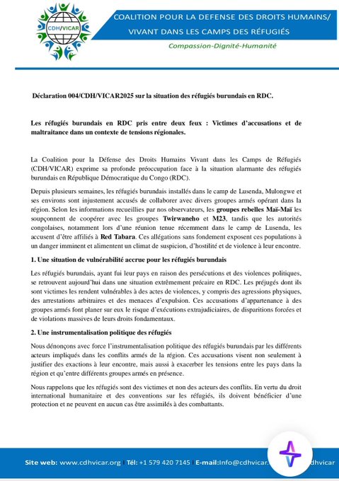 Déclaration conjointe sur le rapatriement forcé des réfugiés burundais de Tanzanie