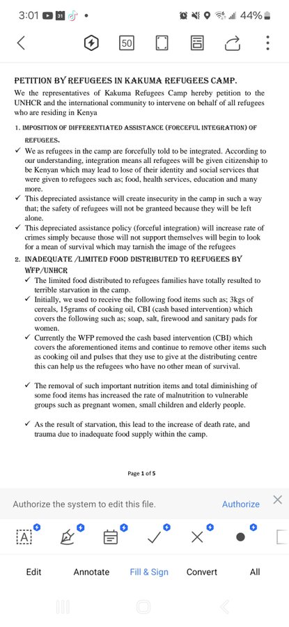 Refugees in the Kakuma Refugee Camp, Kenya, have formally submitted a petition to the UNHCR and the international community, denouncing severe humanitarian challenges and calling for urgent intervention. The petition highlights forced integration, severe food shortages, limited access to clean water, inadequate healthcare, and obstacles to education and employment, which collectively endanger the lives and dignity of thousands of displaced persons.